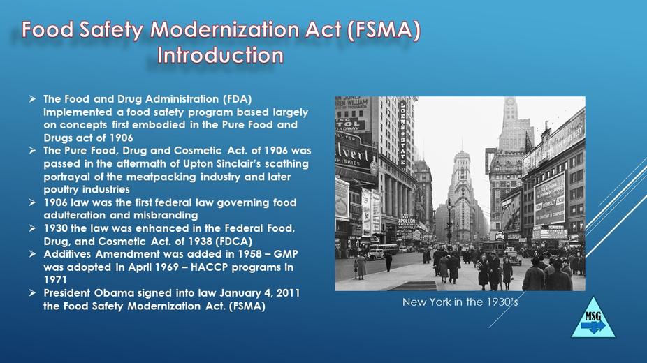 The food safety modernization act 7 was then passed by us congress. On january 4, 2011, the food safety modernization act (fsma), signed into law by president obama, authorized the creation of a more comprehensive and restrictive food. This act amended section 415 of the ffdca with the aim to prevent rather than respond to contamination and outbreaks. Fda established 7 major rules that are meant to implement the fda. Fda's food safety modernization act: